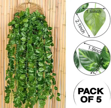 (7 Feet) (Set of 5 String) 30 Leave in one String Artificial Garlands Money Plant Hanging Leaves Greenery Vine Creeper Plants for Home Decor Main Door Wall, Balcony, Office, Decoration Party & Festival Craft