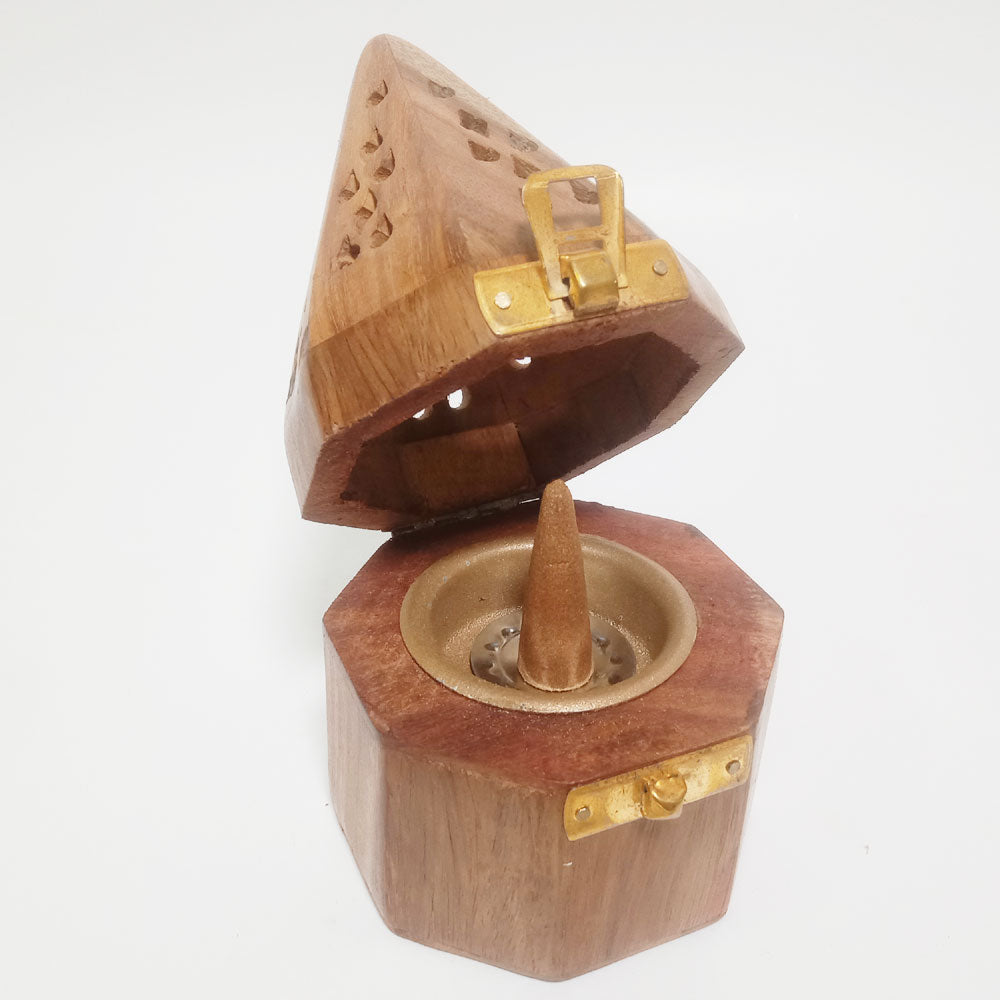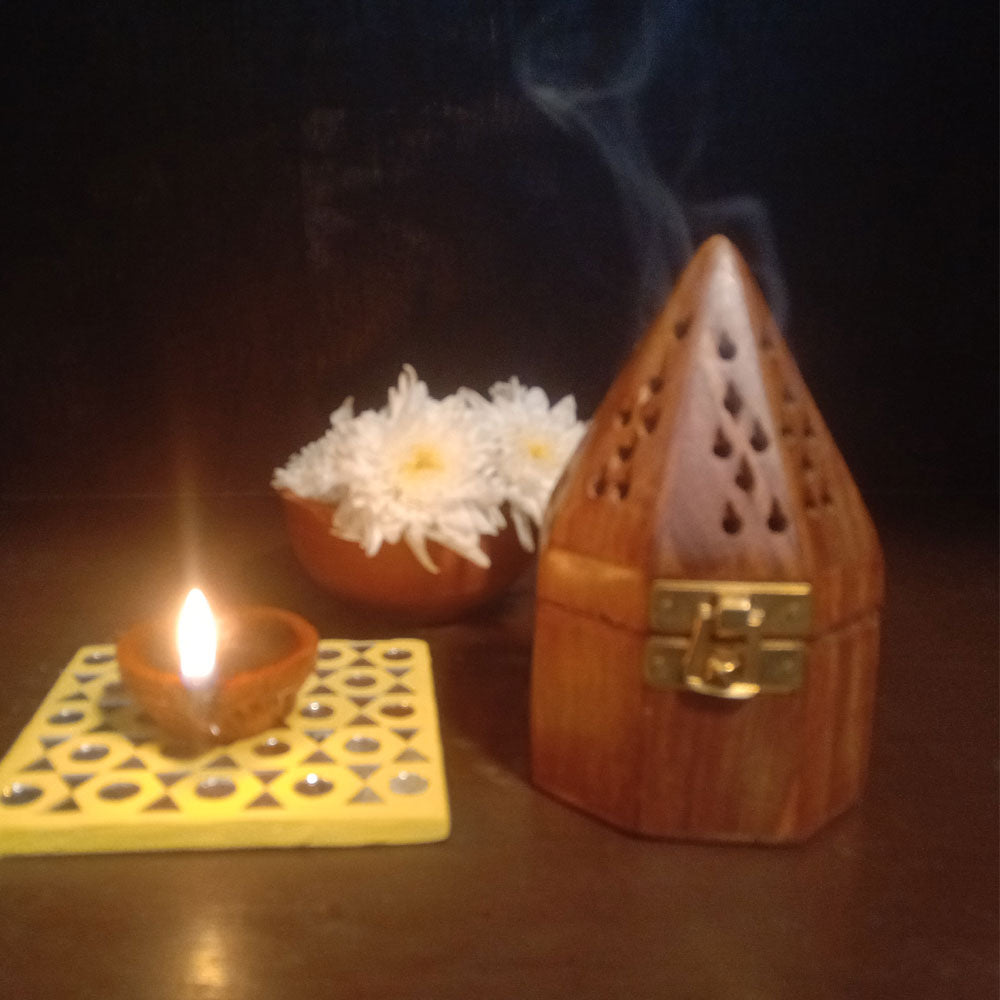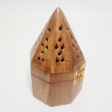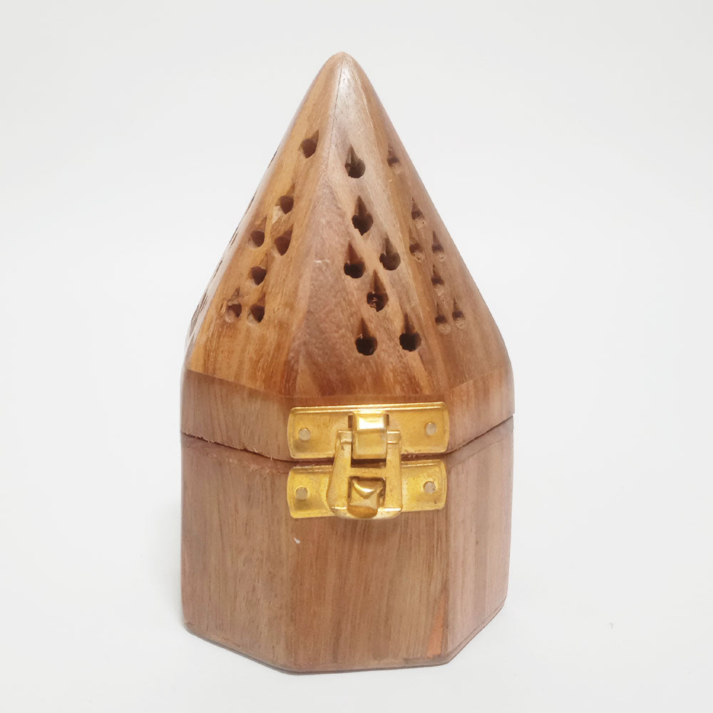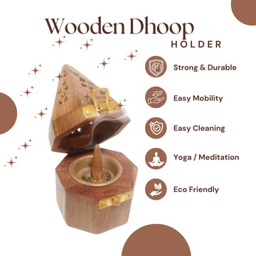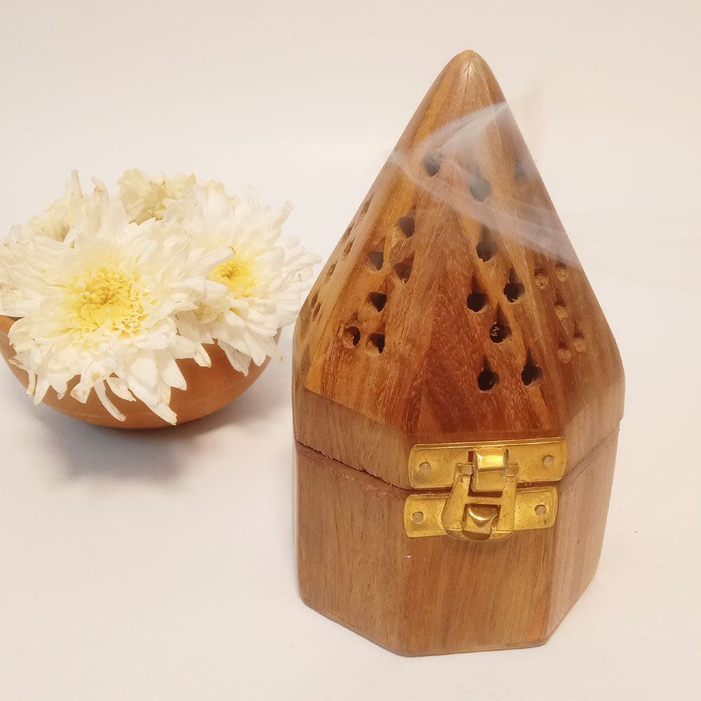 Crafted from premium Sheesham wood, this octagon-shaped dhoop holder is a blend of functionality and timeless design. Measuring 3" in width and 5" in height, it is perfect for pooja rituals, meditation, or yoga sessions. Its intricate craftsmanship adds a natural touch to your sacred space while keeping your surroundings clean and organized. This versatile holder is an excellent gifting option for housewarmings, weddings, or return favors, making it a meaningful token of appreciation. A durable and elegant piece, it elevates your spiritual practices and complements any home décor with its rustic charm and artistic appeal.